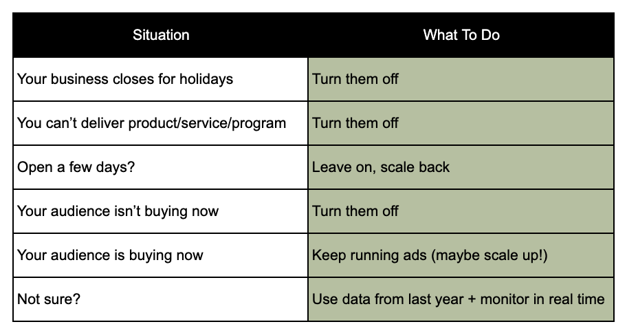 "Should I pause my Facebook and Instagram Ads for the holidays?"